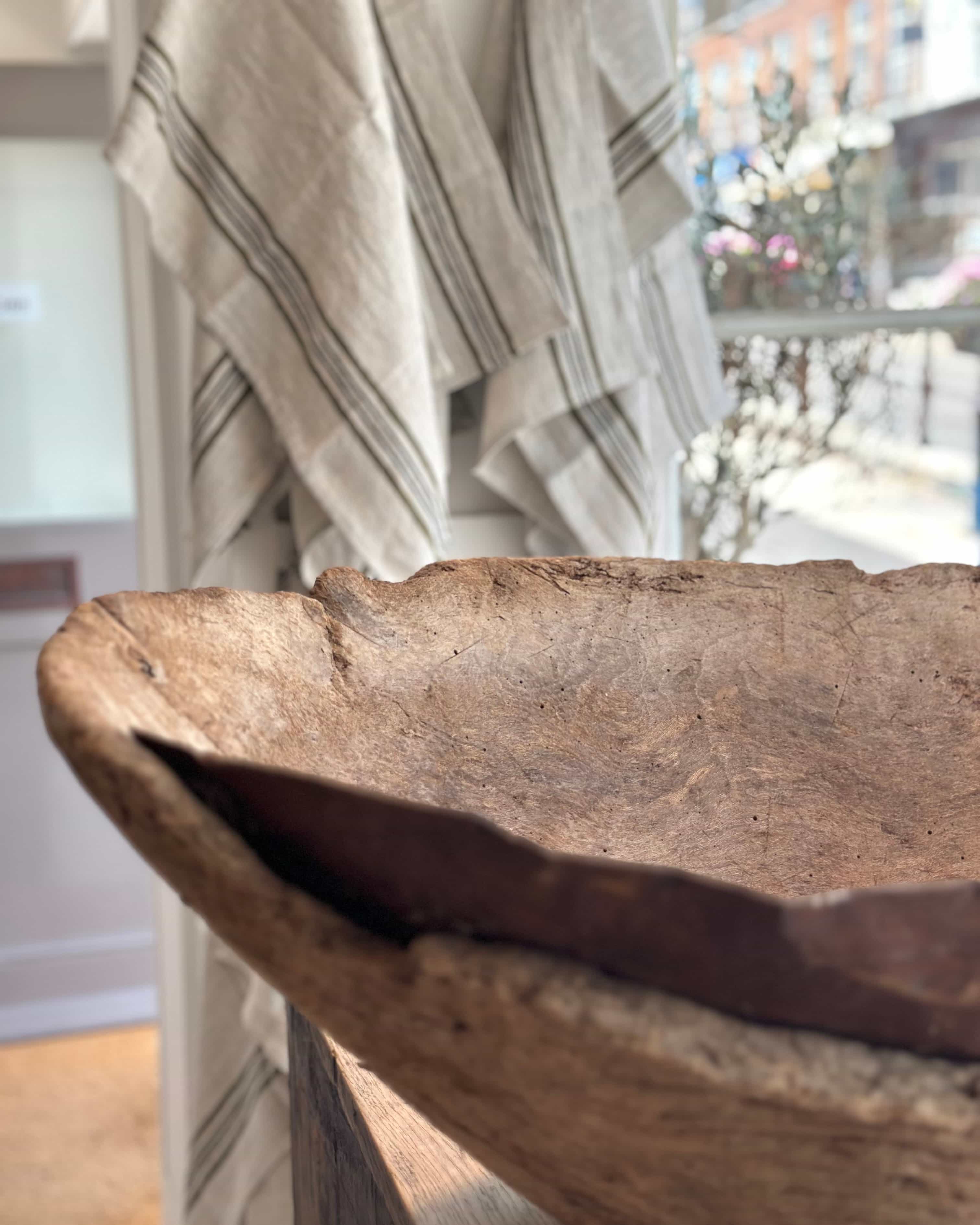XL European Antique Wooden Bowl